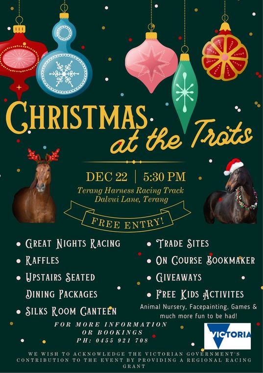 We invite you to renew your Membership of the Terang Harness Racing Club Inc for 2025; you will receive a 2025 Trots Card and an annual guest pass in the form of another Trots Card. The Trots Card entitles you to attend most Victorian Trots Meetings for the 2025 season, all THRC race meetings and voting rights at the AGM.